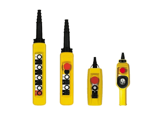 吊装式按钮盒,可以装配2至12个按钮,适用于行车、升降机等设备的多方向移动控制